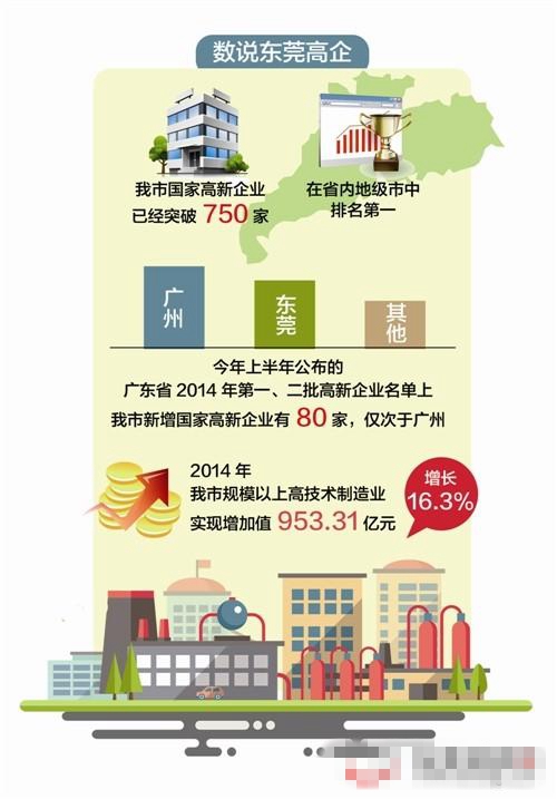 数据显示,我市国家高新企业已经突破750家,在省内地级市中排名第一。今年上半年公布的广东省2014年第一、二批高新企业名单上,我市新增国家高新企业有80家,仅次于广州。2014年,我市规模以上高技术制造业实现增加值953.31亿元,增长16.3%。其中,高新技术产品出口总额335.99亿美元,同比增长13.13%,占全市出口总额的比重提升到36.98%。