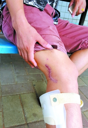 但即便出院后,姚先生的右腿还是装着支架,“如果没有这个塑料支架,那膝盖就很难提起来”,即便装着支架,走路也不顺畅,一瘸一拐的,与受伤前根本没法相比。