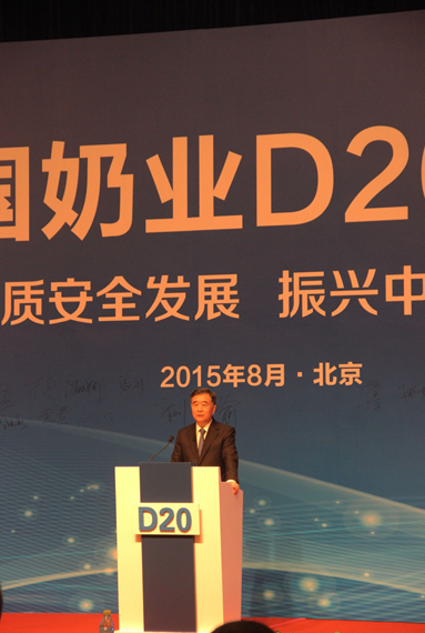 2015年8月18日,由农业部、中国奶业协会主办的“中国奶业D20峰会”在北京召开。国务院副总理汪洋同志出席会议并发表讲话,农业部部长韩长赋,国务院副秘书长江泽林,国家质检总局、国家卫生计生委食品司、国家发改委农村经济司、国家工商行政管理总局以及中国奶业协会领导出席会议。