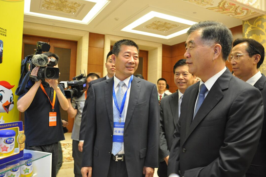 汪洋副总理巡视飞鹤乳业展台 图右一:汪洋副总理 图左一:飞鹤乳业董事长冷友斌