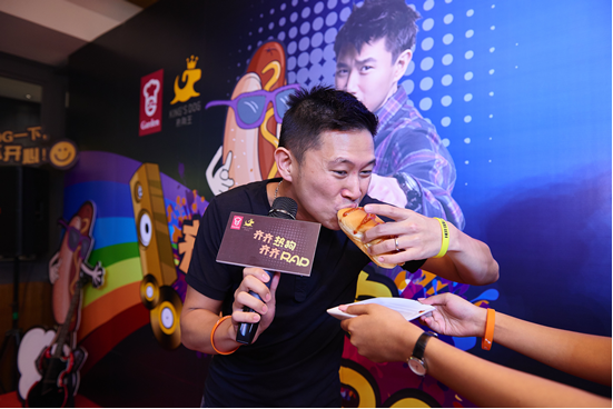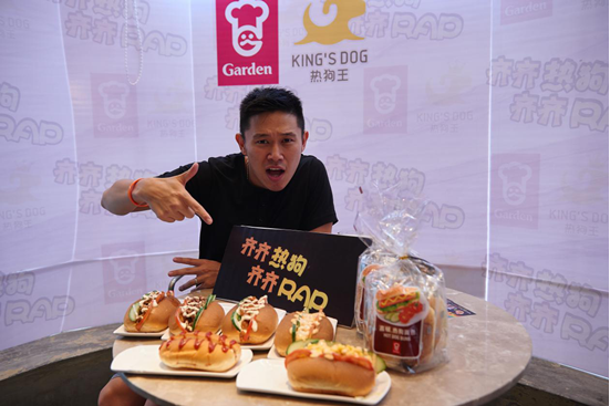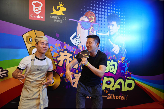 接下来,欧阳靖以热狗为主题即兴创作,开启Rap歌友会模式,RAP到最开心的时候,热狗王餐厅的型仔厨师也忍不住上台一起RAP,各路潮人大呼过瘾,现场气氛瞬间达到高潮。