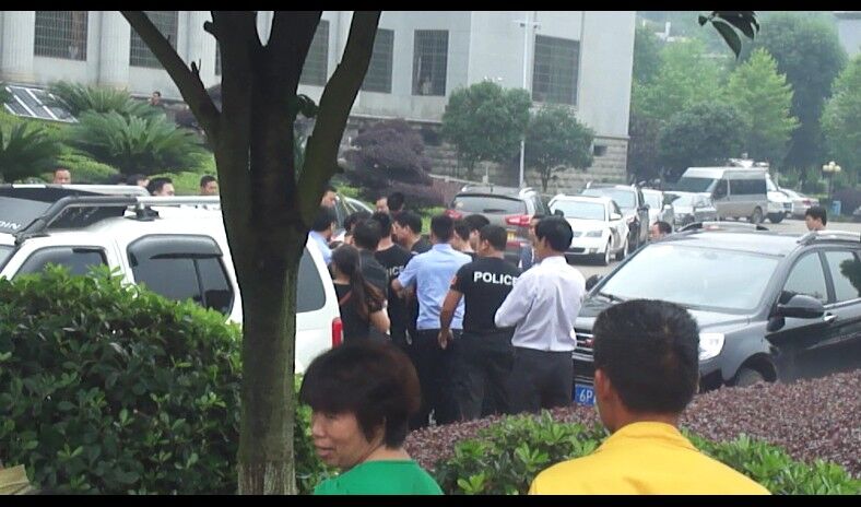 7、周满生家属及部分村民于 2015年5月26日自发到祁东县政府门前上访,却遭到镇压,现场群众手机全部没收,粗暴删除农民拍摄的现场照片,手机因拍到警察打人画面而被砸烂,现场群众举着的3面五星红旗被扯倒,并被一警察用脚踩踏,并警告现场人员:你们不举国旗我们还不会这么做。随后,拉横幅及举旗的二十几人全部被带进县公安局,其中六人被非法拘留,无出示任何拘留文字证明,仅口头告知是违反扰乱政府机关办公罪而被拘留3至7天不等。
