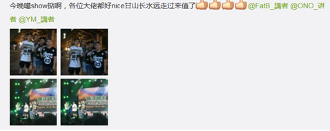 网友@我是张益达评论:“在佛山的珠江纯生生啤酒派对见到了讲者乐队,才知道广东原来也有这么棒的说唱组合,他们的RAP真的是很不错的,没有夺冠有点可惜。”