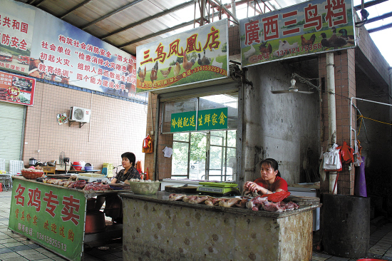 昨日早上,南城西平综合市场内经营生鲜家禽的一位档主表示,两个月前每天都能卖二、三十只活禽,但“生鲜鸡”政策实施后销量大减,现在每天生鲜家禽最多只能卖出十只。“以前的一些熟客说,生鲜家禽摸起来又冰又硬,即使新鲜,口感也不如活宰的好,他们很多都跑到对面买活的去了。”该市场内卖活禽的档主吴女士说,自己的生意的确比卖生鲜家禽的要好点,每天销售活鸡的数量都会超过20只。