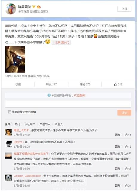 据海峡都市报报道,福州一市民用滴滴代驾,没想到车还没出小区,就刮了两辆车。而投诉不认识路,不会开自动挡,不会打灯不会挂档不会倒车车速15码,更是比比皆是。