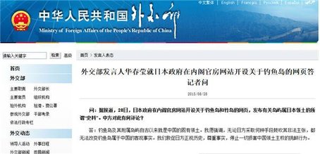 外交部回应日本政府在内阁官房网开设钓鱼岛网页