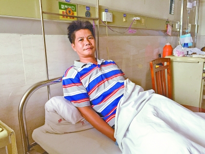 在打斗过程中,刘焕祺被歹徒捅伤大腿流血不止。方镇彬 叶惠涛 摄