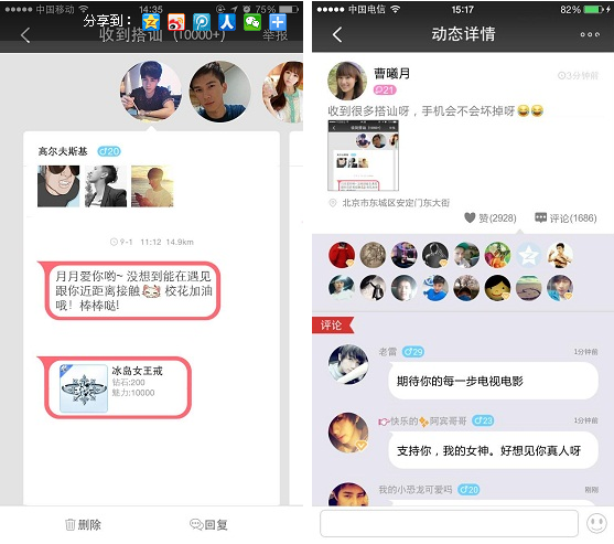 李宗霖、曹曦月、向以丞、邵雨薇、杨芸晴、徐开骋……或许电视迷对这些演员的名字会感觉到陌生,但事实上,在年轻人群体,这一众演员正随着网剧热播变成炙手可热的新晋明星。在活动期间,新晋明星们抽出时间登录“遇见”,通过发布动态、加入圈聊、回应搭讪等跟网友们进行互动。不过“遇见”用户的热情和庞大规模几乎“吓傻”了“校花”们。