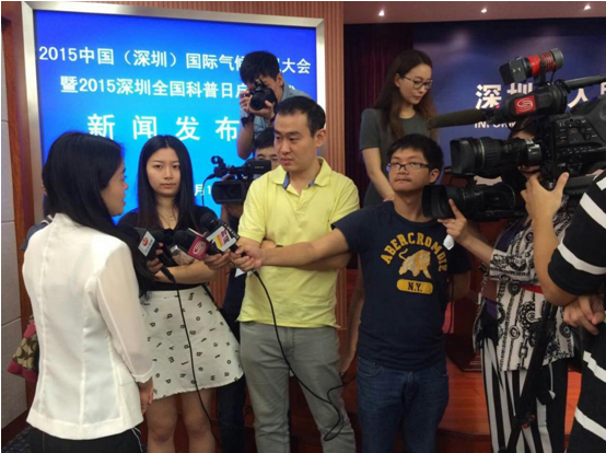 作为2015年深圳全国科普日系列活动的重要组成部分及启动仪式,今天上午10:00,2015中国(深圳)国际气候影视大会(以下简称“大会”)在深圳市政府新闻发布厅召开了新闻发布会。深圳市人大副主任、深圳市科协主席蒋宇扬,深圳市科协党组书记、驻会副主席马建文,深圳市气象局副局长毛夏主办方领导出席新闻发布会并介绍大会征片及评委会情况, 深圳市航都文化产业投资有限公司董事长陈素平、总经理刘晓婷、副总经理源向平介绍大会筹备情况。