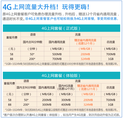 东莞移动4G 资费调整 部分上网套餐全新升级