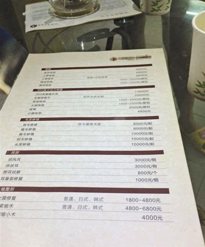 在东城,记者来到了一家名为某某国际美容会所的美容机构,这家店位于商业街附近,人流密集,店里仅有一位年轻女子在工作,面积不大。通过咨询,这名女子向记者展示了一份微整形产品的说明书,其中包括数十项微整形项目,从常见的双眼皮手术到吸脂、注射瘦脸针,每一个微整形项目后面还附有详细的价格。