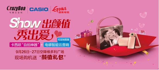 9月26日-27日,维多利广场负一层国美电器,广州首届中秋“美颜节”,Show颜值晒自拍,拼颜值赢奖品,卡西欧和电蟒云音响告诉你自拍照不一样的玩法。