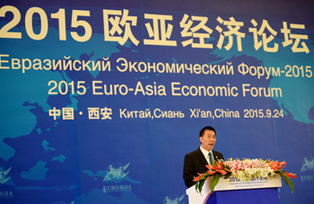 9月24日,2015欧亚经济论坛在西安开幕,国务委员王勇出席开幕式并发表主旨演讲 刘潇/摄