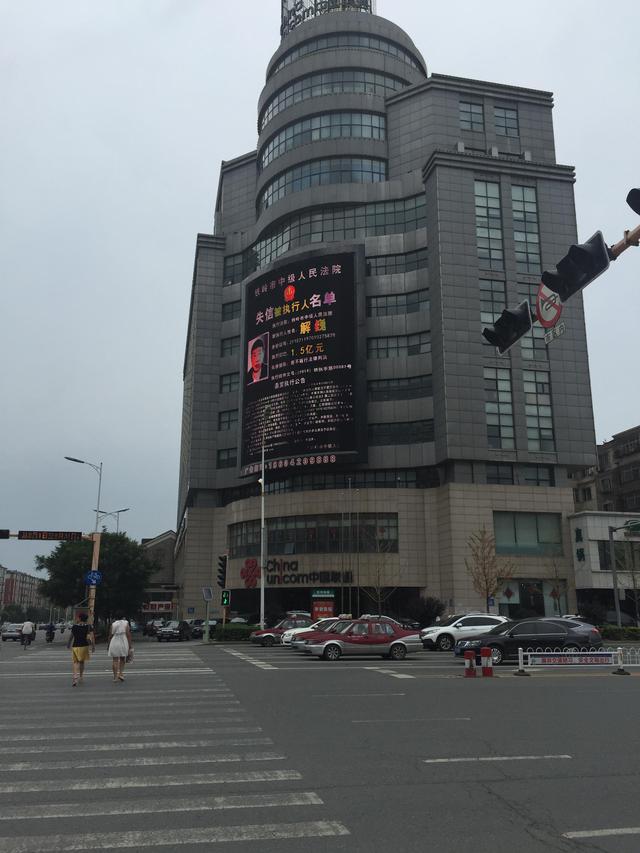 8月6日,记者在辽宁省鞍山市采访时发现,在鞍山市中心千山中路与胜利南路交叉口,标有“中国联通”字样的大楼外挂着的巨大屏幕上连续滚动播出一条“失信被执行人名单”,失信被执行人俗称“老赖”,执行法院是铁岭市中级人民法院。这条公告信息引起了记者的注意。
