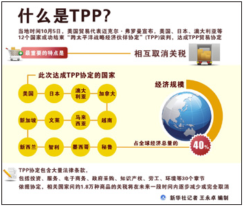 “由于TPP涉及美日两大经济体及亚太地区众多国家,且涵盖范围广泛,自由化程度较高,因此有望对亚太地区的国际经贸格局产生重大影响。”联合国贸发会议经济事务官员梁国勇对记者表示,具体而言,各国所受影响不同。总体上,从贸易、投资、就业、增长等方面的经济利益看,区域贸易协定本身对参与国有利,而对协定之外的经济体不利,非成员国的出口可能因为TPP成员之间的关税减让和更密切的贸易关系而受到负面影响。