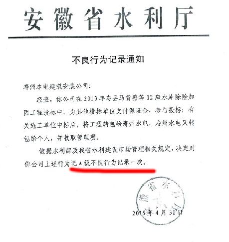 据悉,该案件在法院开庭时,寿县水务局局长张干已被调离水务局!金亿达置业公司以“寿县水务局滥施行政权力、越权拍卖职工股权、严重侵害企业合法权益的违法乱纪行为”为内容形成了材料,向寿县纪检委举报中心进行反映和举报。