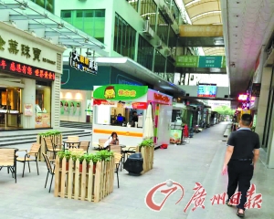 长安高端商业广场之一的地王广场人流密集,商场上方的住宅楼还住有数百户居民。近来,商场中间的人行通道上增建了一排十余间商铺,把消防通道堵住,此情况被市民投诉。
