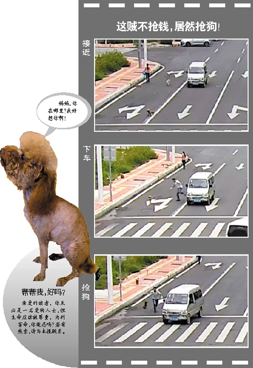 这时,一辆小面包车从对面车道驶来,一个左转,调头缓缓逼近KIKI身旁。KIKI本能避开到路边,突然,一名男子纵身跳下,一把拽住KIKI的狗绳,拎起来就往车上奔。