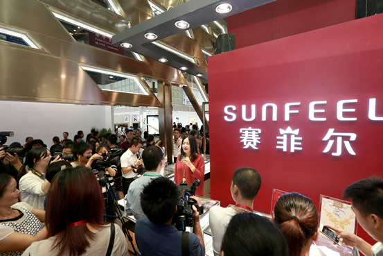 赛菲尔要做第一,王卓舍弃以往的品牌发展套路,用“大品牌、大平台、大事件”的新思路去做品牌。2013年正式签约国际巨星CoCo李玟作为品牌形象代言人;2013、2014、2015年连续三年鼎力赞助央视《星光大道》;2014年冠名央视《喜到福到好运到》;2014、2015连续两年在央视《中秋晚会》上向全球华人送祝福。而在刚刚闭幕的2015深圳国际珠宝展上,赛菲尔耗时半年、集合30余位珠宝匠师手工打造的9.999公斤万足金婚纱更是抢占600多家媒体头条,腾讯视频点击量更是超过千万。