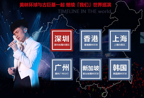 一路走来,美林环球的梦想是像古巨基巡演一样,让它的光辉闪烁在全球各地的每一个角落,目前已完成了新加坡、韩国、香港、深圳前海自贸区、天津自贸区、上海自贸区,未来将继续‘我们’的未完篇章……