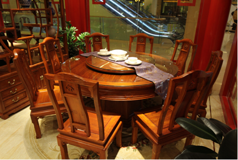 长辈更为讲究寓意与求吉,高脚木椅围落圆形餐桌旁,体现团圆吉祥之意,也是中国人的美好愿望。此款圆餐桌采用大果紫檀经多层打磨而成,桌面光滑结实;经改良的官帽椅作为餐椅,加以雕刻灵芝和浪花,稳重之余增添几分灵动之感。重阳佳节,一家人围坐在一起的合乐景象,一定是老人的最想要的礼物。
