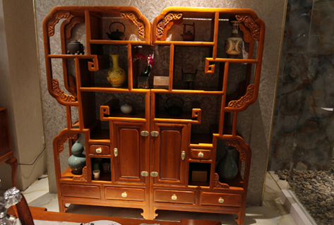 无论是从实用角度,还是从审美角度,博古架都是一件令人钟爱的风雅之物。图中博古架设计匠心,内结方形格架,外圆内方,蕴天地玄黄。雕刻如意纹,在空间上营造了隔而不断的层次感,把手处饰一汉白玉,视觉上成为焦点。或陈设古玩珍奇,或置放书画卷轴,都恰如其分,对于爱好收藏的长辈来说,这份礼物一定能送到心坎上。