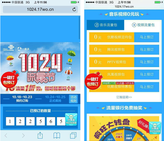 联通1024流量节音乐视频0元玩,限时抢购超150万