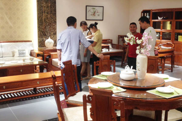 东成红木罗浮宫旗舰店吸引不少消费者选购红木家具