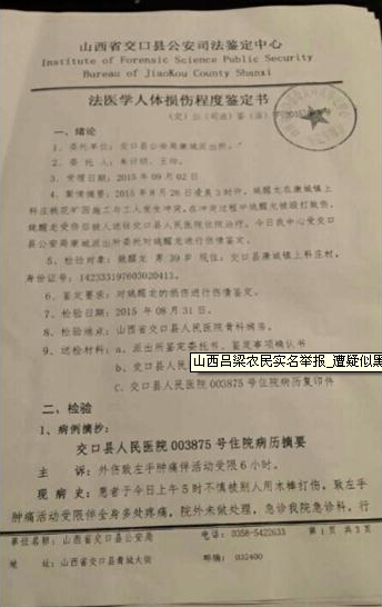 山西吕梁农民实名举报 遭疑似黑社会疯狂报复