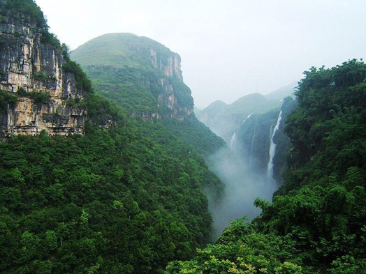 通灵峡是一个长方形全封闭式的峡谷,长约1000米,宽200多米,深300米,它犹如地球突然裂开一条缝,狭长而深邃。峡谷内密密匝匝地长满了原始古树,四周刀削般的悬崖绝壁,也旁逸斜出地长满了婆娑多姿的树木。满谷苍翠,涧水潺潺,整个峡谷弥漫着沁人心脾的灵气。而且,内里荟萃了两千多种植物,其中有许多属国家重点保护的珍稀植物。