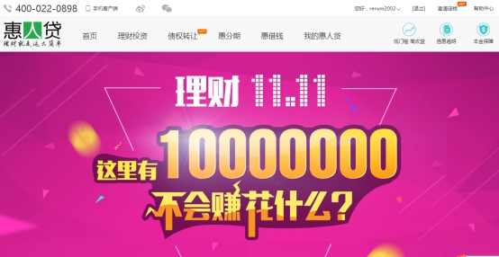 “昨天是惠人贷双11理财节第一天,千万现金券不限领,你领了吗?”11月10日,王女士如是问理财的朋友。虽然距离11月11日还有1天,但与往年不同的是,很多消费者不再盲目于购物消费,而是将目光转向了如何使自己的财富增值。