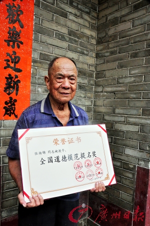 昨日,记者从横沥镇政府获悉,87岁的牛经纪张杨锦,荣获“第五届广东省道德模范”和“第五届全国道德模范”提名奖。