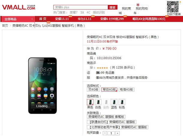 荣耀畅玩4C增强版双11开售倒计时 799元起超值狂促!