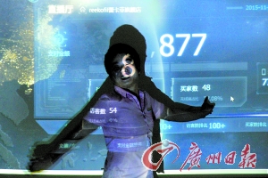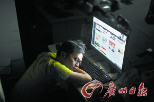 昨日凌晨,一电商关注着自己天猫旗舰店的交易额,其脸上正好出现了个8字。 记者 葛宇飞 摄