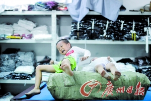 昨晚,做电商的父母都忙坏了,孩子们自顾自地在仓库里玩。 记者 葛宇飞 摄