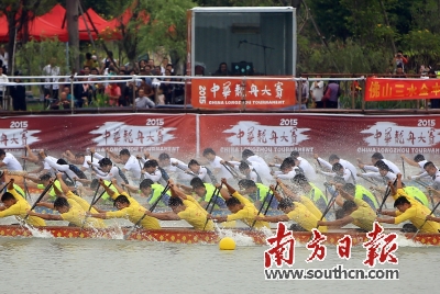 11月15日上午,2015中华龙舟大赛(东莞·麻涌站)在麻涌镇华阳湖湿地公园落幕,32支职业龙舟劲旅与9支东莞本地传统龙队伍为全国观众献上了一出精彩的龙舟大戏。其中,东道主东莞麻涌光大龙舟队表现出色,勇夺100米直道赛、200米直道赛以及总成绩3项冠军。