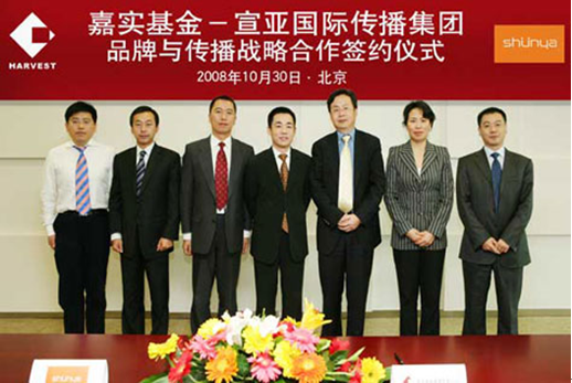 2008年10月30日,嘉实基金管理有限公司与宣亚国际品牌管理(北京)股份有限公司在京签定《品牌战略规划与全传播服务协议》,双方高层领导及团队成员共同见证了这一重要时刻。根据协议,宣亚国际品牌管理(北京)股份有限公司将为嘉实基金提供长年品牌规划管理、整体传播策略、行动营销、互动营销、互联网口碑管理、公共关系、媒介策划执行等整套“全传播”服务。