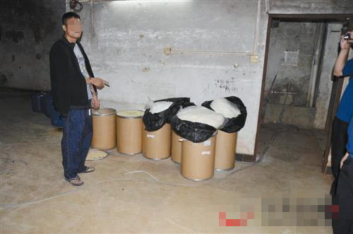 ■图为警方在制毒工场里搜获的制毒原材料结晶体。(记者 郑家雄 通讯员 管萱萱 摄)