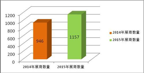 展商统计参展商数量:1157家参展企业,与2014年的946家展商相比,增长22%。