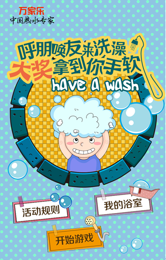 网友通过“找伙伴”的方式邀请更多的朋友来洗澡,最后看谁约到的“澡友”多,以多取胜,并能获得万家乐奖励。其中有价值3000到4000元的热水器、价值2000元的厨电套装、多张50元礼品卡以及上百份话费充值卡,无不让消费者心动不已!