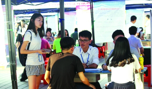 11月18日广东科技学院毕业生招聘会上,大四男生陈良岸以公司董事长身份,设点招聘同学,成为招聘会一大亮点。23岁的陈良岸,大三下学期就找到一份月薪8000元的工作,但做了几个月他就放弃了,毅然踏上他热衷的创业之路。