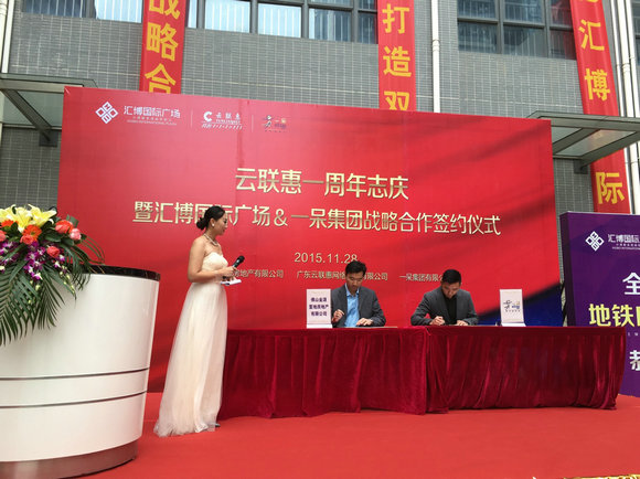 2015年11月28日一呆集团有限公司与佛山金源置地房地产有限公司就汇博国际广场项目签署战略合作协议。现场一呆集团有限公司领导、佛山金源置地房地产有限公司领导、各大主流媒体记者,以及汇博国际广场项目合作伙伴、云联惠商家、广东省自驾旅游协会代表、新老业主共同见证了此次签约盛况。这一仪式的举行意味着一呆公寓将入驻佛山汇博国际广场,为业主打造双升值物业,引爆房产新价值。