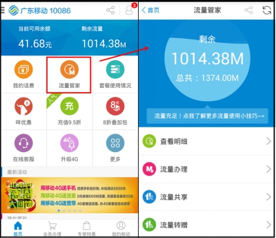 虽然三大运营商已从10月份开始实施了当月流量不清零政策,但由于具体扣费问题的不明确,引起了用户的疑问甚至不满。其中移动公司就表示,先扣除上月套餐流量,再扣上月剩余流量,最后才扣除套餐。值得注意的是,新版广东移动10086APP新增“流量日提醒”、“流量有效期”以及“WLAN套餐”查询功能,套餐使用明细一目了然,方便用户自主查询,无疑是为广大移动用户度身定制的流量管家。有移动用户表示,自从使用了广东移动10086 APP,就可以时刻掌握流量剩余情况,再也不用担心流量使用超标。