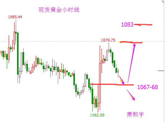 现货黄金可参考策略:黄金价格1079-80空单进场,损1084,目标看1074-70破位持有;下方首次触及1067-68一带可短多,损1063,目标看1074-78破位持有;