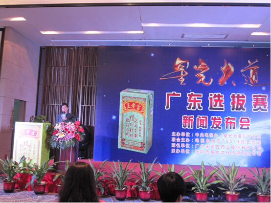12月12日上午,由中央电视台主办的《星光大道》广东选拔赛在广州逸林假日酒店举行了启动发布会,正式拉开广东赛区的活动序幕。作为本次赛事全程赞助商,王老吉药业相关领导出席发布会并致辞。