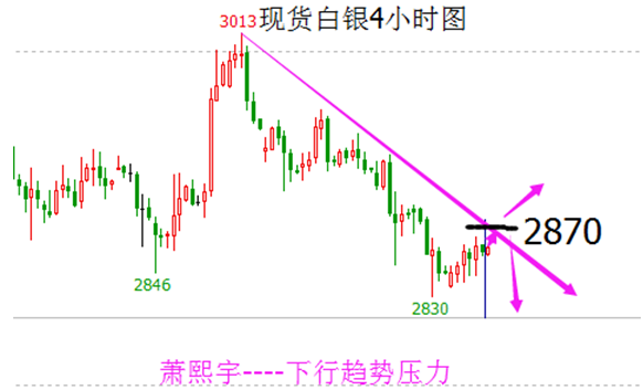现货白银可参考策略:白银价格下方2840一带多单可进,损35个点,目标看2870一带即可,上方2880附近空单进场,损2910,目标看2850-40;(撰稿人:萧熙宇)