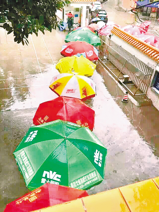 12月14日,“爱心长廊”第一次搭建成功。“我们看天气预报说15日才下雨,没想到14日一大早就开始下雨。”协会秘书长蔡德勇说,当天早上他和叶庆满、吴锐光等家长志愿者早早来到学校,撑起一把把爱心伞,在校门口与教学楼之间连接了一条“爱心长廊”,让上学的孩子直接从“爱心走廊”走进学校,免去被雨水淋湿带来的麻烦。