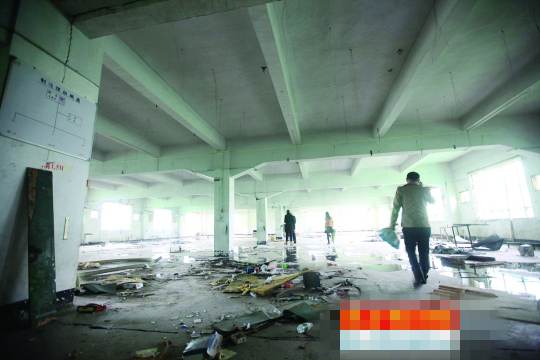 伸金公司旧厂房,工人搬走后,宿舍一片狼藉。