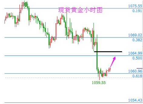 现货黄金早间可参考策略:黄金价格现价1061一带进多,损1057,目标看1066-68破位持有;