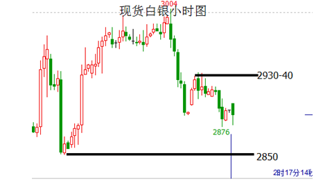 现货白银昨日小幅回落,继续维持在2830-3000大的震荡区间中部整理之后,节前消息面清淡小区间震荡态势恐将延续。而昨日冲高回落走势今日或将延续,但接近前期底部附近,下跌空间有限,后市依旧是建议逢低做多。下方支撑2850-30,上方关键阻力位依旧是2940-60.而昨日反抽高点2920将是今天我们进场空单位置。
